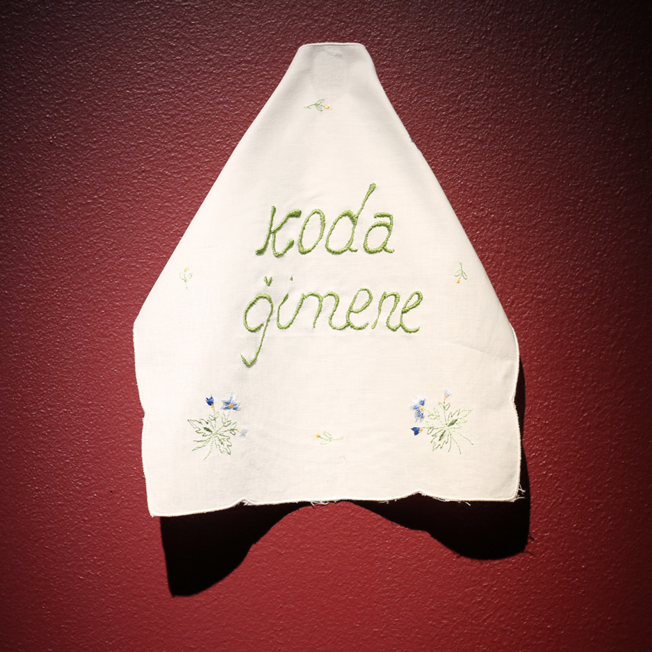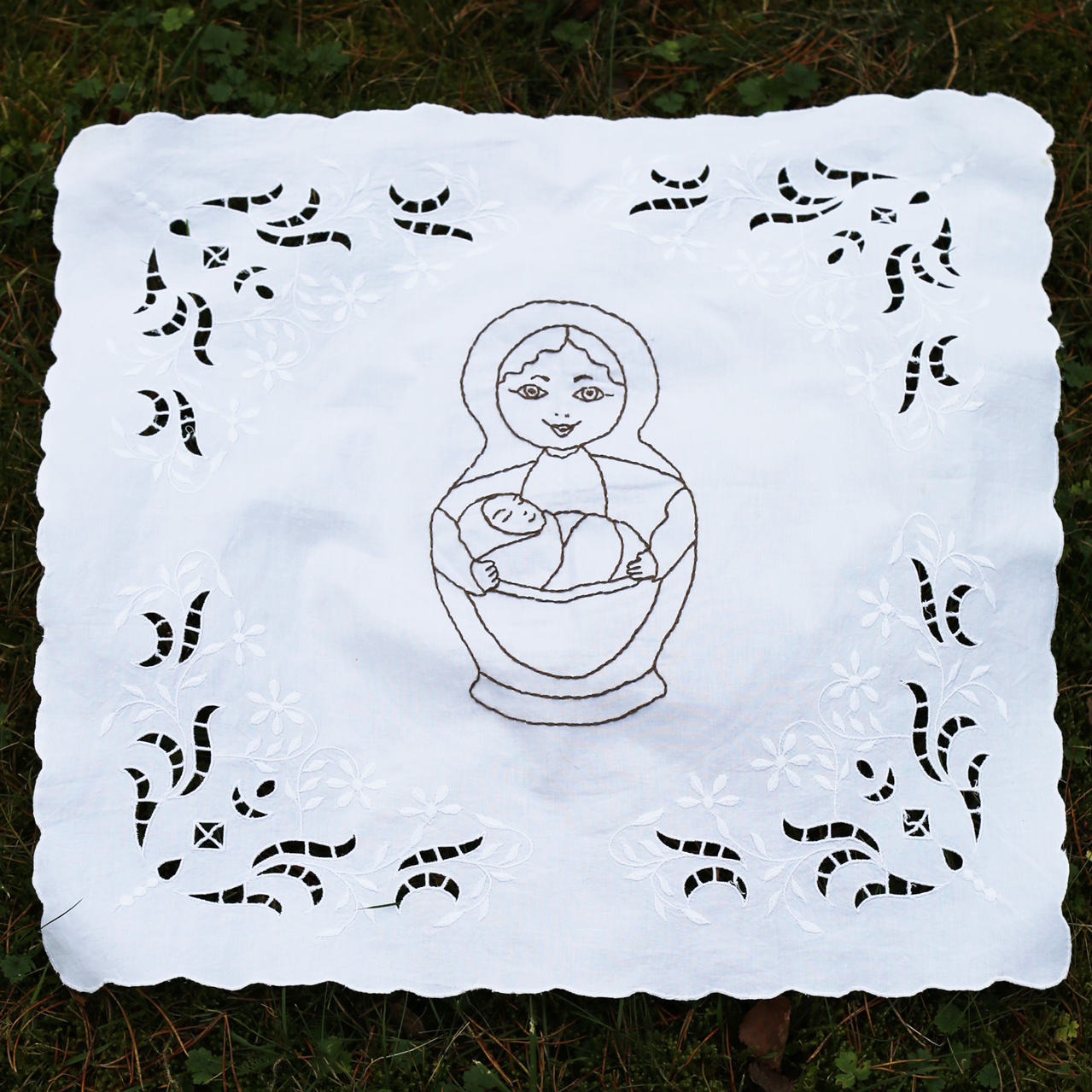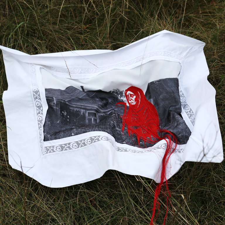 Is it our right, or merely selfishness, that we are increasingly focused on ourselves and our own benefit? We prefer to buy the latest cars and designer clothes rather than start a family. Hand embroidery on cotton, 70 x 70 cm, 2025